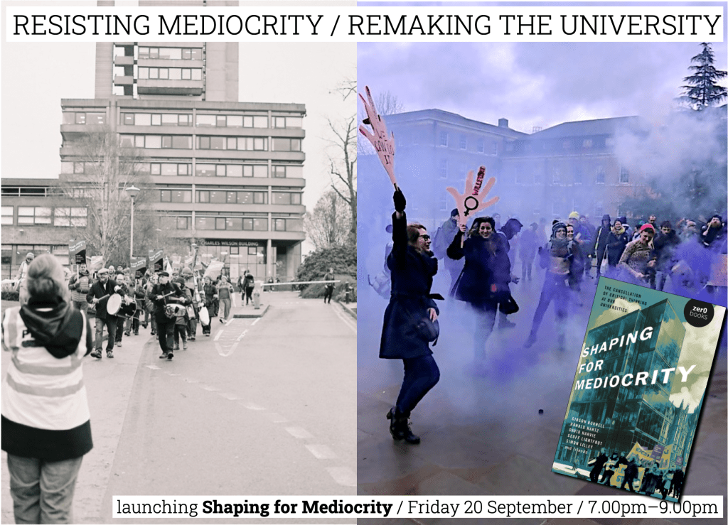 This event will explore the contours of the crisis in universities, and consider possible routes out of the mess made by neoliberal management. We will ask, what would education look like without the profit motive? How can we resist the university’s relentless mediocrity in order to build something better, whether on campus or beyond?